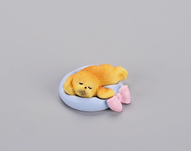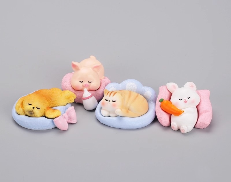 - This figurine features a small cartoon pet in a pouncing pose, designed to be cute and realistic.